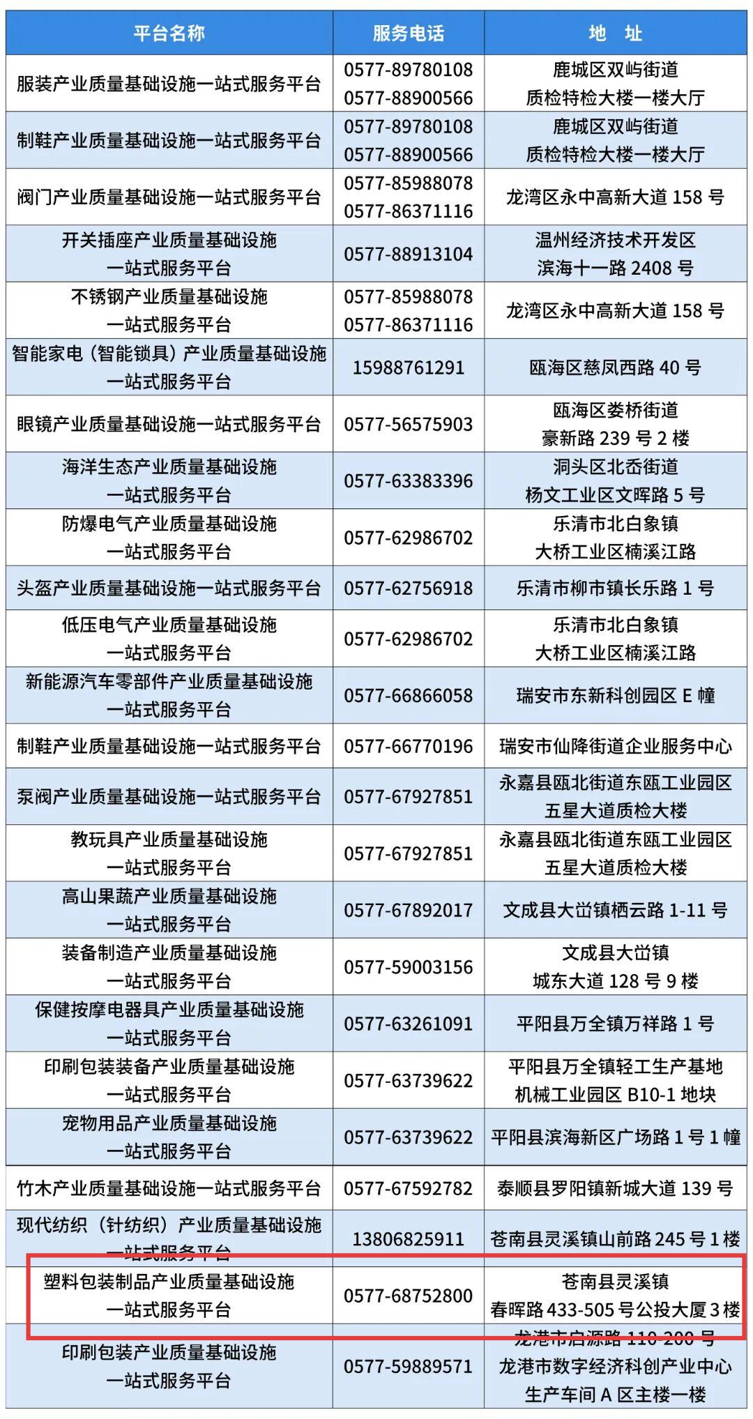 近日,温州市市场监管局发布“温州市质量基础设施一站式服务平台分布图”。该地图整合了目前全市质量基础设施一站式服务平台建设成果,以服务产业、助力发展为导向,为产业和企业提供更加便捷、高效的质量基础设施集成服务指引。其中,塑料包装制品产业质量基础设施一站式服务平台落地于苍南县灵溪镇春晖路 433-505 号公投大厦 3 楼,将聚焦当地塑料包装产业的质量检测、标准咨询等需求,为企业提供‘家门口’的集成化质量服务,助力产业提质升级。”